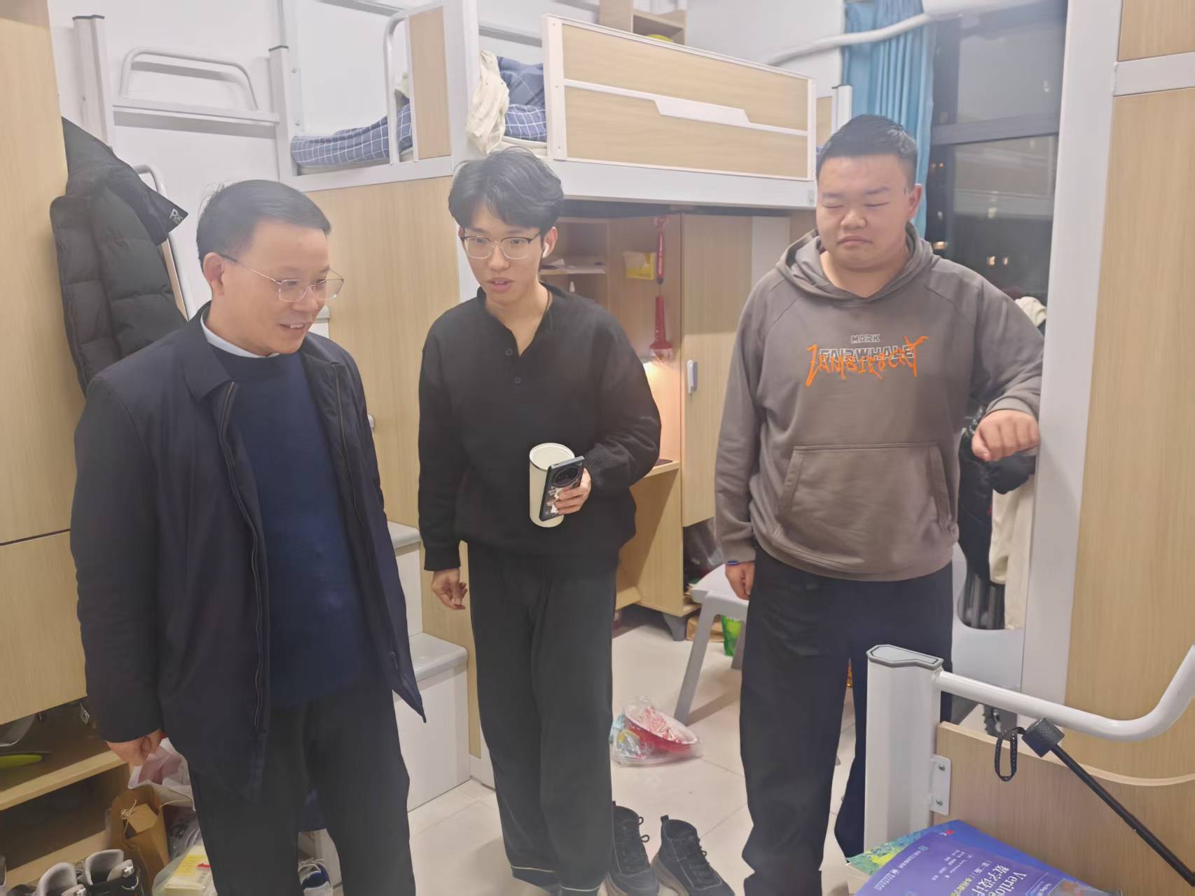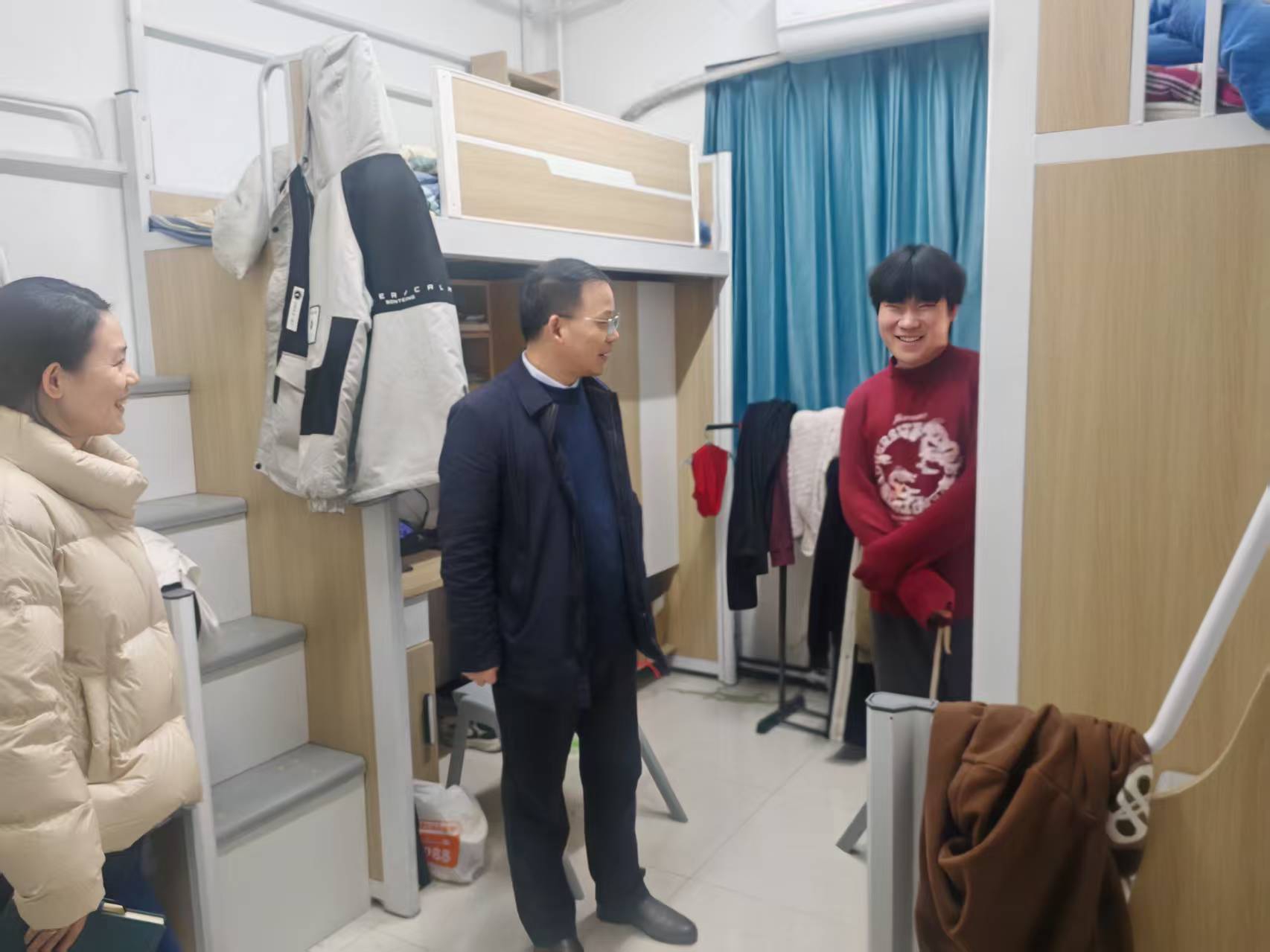 走访过程中,大家重点排查了宿舍内是否存在违规用电、私拉乱接电线、使用大功率电器等安全隐患,仔细检查了消防器材是否完好、门窗锁具是否牢固、物品摆放是否整齐。同时,还特别关注宿舍卫生状况,引导学生养成良好的生活习惯,共同营造安全、整洁、有序的宿舍环境。